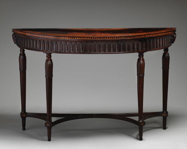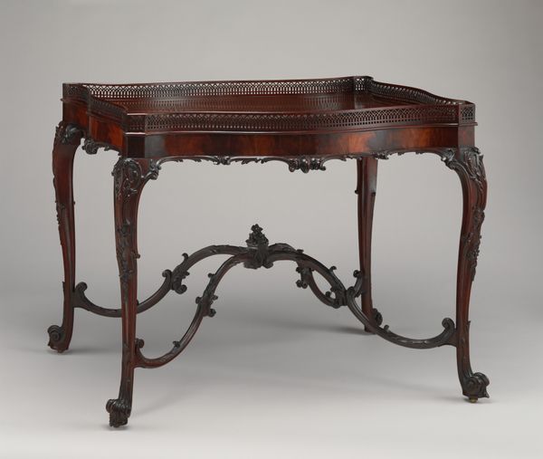 Editor: Here we have a mahogany Sideboard, made around 1820, and currently housed in The Art Institute of Chicago. It was crafted by Edward Priestley. The first thing that grabs me is the contrast between the simple, dark wood of the top, and the very detailed, almost playful carving of the legs. What can you tell us about this piece? Curator: This piece speaks volumes about the relationship between production and social status in the early 19th century. Consider the materials: mahogany, a tropical import, signaled wealth and global trade networks. The craftsmanship—specifically the carving—demands skilled labor, a valued commodity in its own right. Editor: So, you're saying the very stuff it’s made from tells a story? Curator: Exactly. This isn’t just a pretty object; it embodies a hierarchy of access and ability. Neoclassical design was all about appearing refined, but what resources were required to *achieve* that refinement? Note the repetitive fluting on the legs too: was this done by hand for each piece, or did developing industrial processes factor in? Editor: I see. The repetitive elements versus the handcrafted details really highlight that tension between handcrafting and emerging industrialization. Curator: And think about the role this sideboard played in a domestic setting. It wasn’t merely functional. It performed status, suggesting access to the world and sophisticated taste to anyone who entered the home. Does analyzing the sideboard this way change how you look at it? Editor: Absolutely! I originally just saw a piece of furniture. Now I am seeing it as a symbol of labor and the reach of global economies. Curator: Precisely! And hopefully we can all appreciate art from the 19th Century a little better going forward.