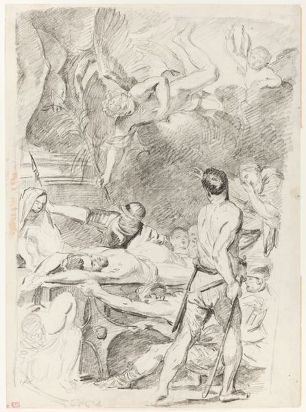 Curator: At first glance, this feels… dreamlike. The figures almost seem to float on the page. Editor: Indeed. We are observing “Venus and Cupid,” a drawing rendered in ink on paper dating back to the period 1590-1600. The artist, Anton Eisenhoit, masterfully employs engraving techniques to bring forth this Renaissance vision. Curator: The composition is quite intriguing. Venus is prominently placed, attended by Cupid, naturally. And then there's that Pegasus rearing up behind them... The linework creates an ethereal quality, doesn't it? Notice how the light catches the figures and highlights them within the piece, enhancing their shapes? Editor: Placing this work within its historical context, engravings like this played a crucial role in disseminating classical mythology during the Renaissance. The revival of interest in Greco-Roman culture directly informed patronage. Disseminating mythological and historical narratives were, as a matter of politics, essential! How else could people claim and perform power without recourse to precedent? Curator: Absolutely! But observe how Eisenhoit utilizes delicate lines to contour the bodies, imbuing the scene with a sensuous, albeit chaste, tone. Editor: A certain standardization of idealized beauty certainly occurs during that period. But consider too how access to these images was restricted. Ownership and display cemented your place within that economy of looking. Curator: Certainly, you're not wrong to identify a hegemonic gaze. But even from the distance of centuries, this print is undeniably striking. The contrasts, light and dark, direct the viewer’s eye and elicit an immediate and sustained impact on perception. Editor: An impact informed by layers of historical meaning. What is clear from analyzing this work, both formally and historically, is that visual culture preserves power dynamics across vast reaches of time. Curator: Ultimately, isn't that the enduring power of great art: that its ability to reveal deeper, less obvious truths resides in visual language. Editor: Well said! Whether focusing on aesthetics or historical contexts, hopefully visitors appreciate that both approaches deepen our experience of the art and the culture surrounding its production.
