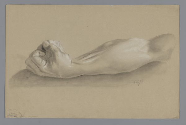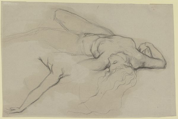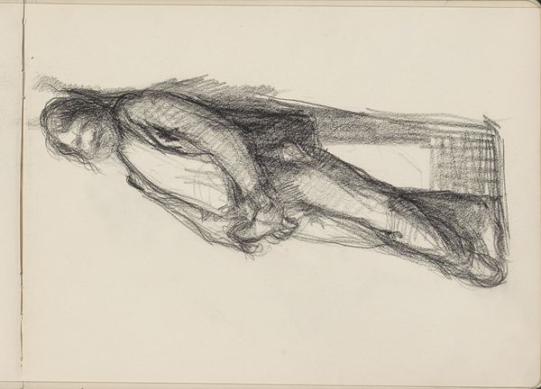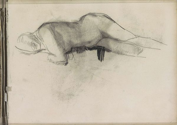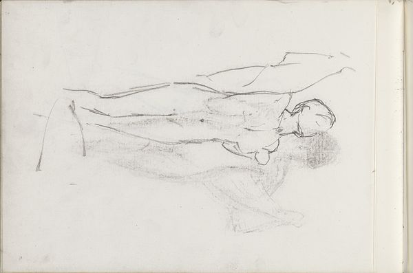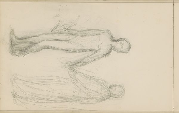 Curator: My goodness, this pencil drawing… there’s an unsettling intimacy about it. A sense of vulnerability, wouldn't you agree? Editor: The intimacy comes from its sketch-like quality. The labor here appears immediate, like the artist captured a fleeting moment on paper, without worrying too much about finish. The Rijksmuseum tells us it's "Standing woman carrying a baby against her chest" made between 1865 and 1913 by Bramine Hubrecht. It certainly reads as a quick study of form, the economy of line being its most striking element. Curator: Indeed. Notice how the artist utilizes minimal strokes to convey such powerful sentiment, the inherent bond between mother and child represented through touch and embrace? It's almost a universal archetype. Think of the Madonna and Child throughout history... the symbolic power is profound. Editor: That’s a solid interpretive reading. What strikes me is how provisional it seems, how reliant on the qualities of the pencil and paper it is. And perhaps its apparent lack of finish makes it so relatable, it is less idealized than religious painting. You could find drawings like this being produced en masse in workshops and sketchbooks from across this period. Curator: That's precisely what I find compelling – the interplay between the archetypal mother and child, juxtaposed against the seemingly casual creation. A primal, even sacred motif rendered using ordinary tools. But where and when might the setting have been? Who were these ordinary mothers? Editor: Exactly! The focus on materials and labor asks those kinds of contextual questions. For whom were such studies made? Was Hubrecht part of the social reform movements interested in improving the lives of the urban working class and its maternal health crisis at the time? These are vital social context questions we could consider to help the audience delve more deeply. Curator: I appreciate your insights regarding materiality; it deepens the narrative significantly, adding layers beyond mere sentimental recognition. Thanks. Editor: And thank you. Reflecting on the economics of the period makes us appreciate this seemingly simple artwork even more.