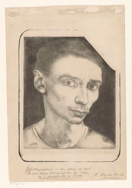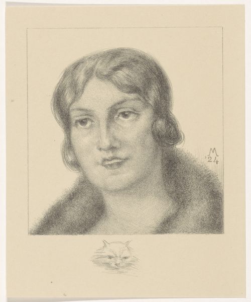 Editor: This is Simon Moulijn's 1925 pencil drawing, "Portret van Henriëtte Haitsma Mulier", currently held at the Rijksmuseum. There's a captivating serenity in the subject's expression. How does this portrait sit within the context of art and society at the time it was made? Curator: It’s fascinating how Moulijn captures this serenity, isn't it? Consider that this was created in 1925, a time of great social and political upheaval after the First World War. The rise of Modernism challenged traditional artistic conventions, yet portraits, like this one, offered a connection to established social structures. What do you think this says about the public role of art during this transitional period? Editor: I see how a portrait provides stability during such uncertain times! Did the sitter's social status play a role in the artistic choices that were made? Curator: Absolutely. Henriëtte Haitsma Mulier likely belonged to a specific social circle, perhaps an intellectual or artistic community, shaping how Moulijn represented her. A simple, realist rendering in pencil moves away from traditional aristocratic portraiture, and perhaps suggests a different vision for society, one less dependent on hierarchies of wealth and class. Who would view it, how would they perceive her? Editor: I hadn’t considered how the artistic medium itself reflected a shift in social values. It moves away from glorification. The drawing style feels more personal, more intimate. Curator: Precisely! So what has shifted in your perception of this work? Editor: I came in thinking only of its aesthetic qualities, and I realize I needed to see how its form is deeply interwoven with broader social movements. I appreciate how your expertise enriched my view of its place in art history. Curator: And I've found it very enlightening to reconsider how its simplicity speaks to complex social dynamics of its time. Thank you for your thoughtful perspective!