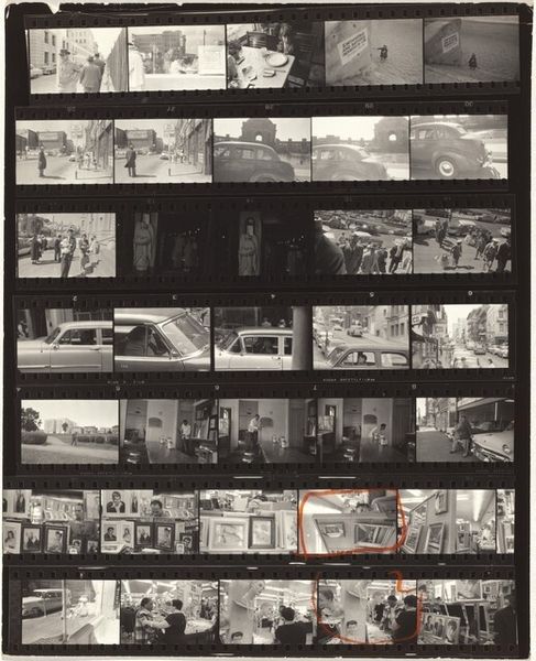 Robert Frank’s photographic contact sheet, 'From the bus 53', gives us a look into the artist's working process. The monochromatic tones here, the deep blacks and nuanced grays, aren't just about recording an image; they're about feeling. There’s a tactile quality to these frames, a sense of peering directly into Frank's mind as he navigates the city. Each image is a raw, unfiltered slice of life, capturing fleeting moments with a kind of tender brutality. I'm drawn to the strip showing the interior of a bar. The textures seem to almost drip off the photograph with a melancholic light. The reflections on the glass, the worn surfaces, it all speaks to a reality that's both gritty and beautiful. Like Garry Winogrand, Frank had an appetite for the chaotic poetry of everyday life. Both artists encourage us to find beauty in the ephemeral and often overlooked details of the world around us. What we are left with is a feeling, a fleeting moment of connection.
