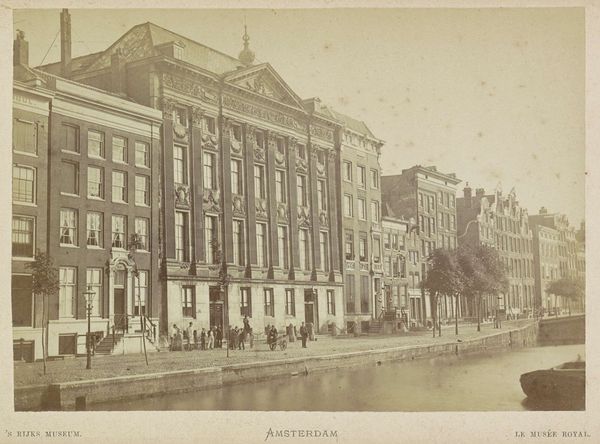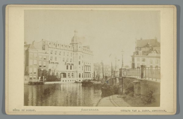 This photograph shows the Koninklijk Postkantoor, or Royal Post Office, in Amsterdam. Though the photographer is unknown, it was likely made in the late 19th century. The image captures the post office's imposing facade along the Nieuwezijds Voorburgwal canal. Note how the architecture blends with the surrounding buildings, yet still asserts its presence through scale and classical details. This was a time when the postal service was becoming increasingly important for commerce and communication, and its architecture reflected this new civic importance. Consider how the photograph itself participates in the culture it depicts. Produced and sold as a commercial product by A. Jager, it represents the growth of mass media and visual culture, creating a shared image of Amsterdam's urban space. To fully understand its historical context, we can consult archival records, architectural plans, and period publications. In doing so, we can understand how the postal service was regarded as a symbol of progress and national identity.