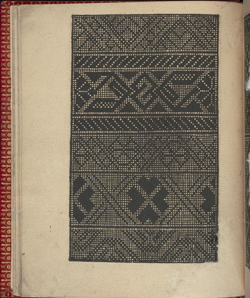Editor: Here we have a page from *Ce est ung tractat de la noble art de leguille ascavoir ouvraiges de spaigne… page 5 (recto)*, dating from 1527 to 1540 by Willem Vosterman, currently residing at The Met. It’s a print, showcasing geometric patterns that strike me as both intricate and surprisingly modern. What do you see in this piece, considering its context? Curator: I see more than just a pattern book; I see a powerful tool for female agency in a patriarchal society. Needlework was one of the few avenues of creative expression readily available to women, and books like this were essentially empowering manuals. These designs, with their geometric rigor, demanded precision and skill. Can you imagine the conversations sparked, the communal learning, around these pages? How would that have empowered women, do you think? Editor: I hadn't considered the social implications! I was so focused on the visual aspect of it. So, this wasn't just about pretty patterns, but also about knowledge sharing and, in a way, female autonomy? Curator: Precisely! And the "Spanish work" mentioned in the title was highly prized, reflecting the flow of cultural capital. It’s crucial to consider the intersections of gender, class, and artistic production. Consider the accessibility of print – how did printed guides influence traditional, perhaps localized, designs and patterns, and who benefitted the most from this exchange? Editor: That makes me wonder about the class aspect. Were these books accessible to all women, or mainly those from privileged backgrounds who could afford them? Curator: That’s a critical question! Affordability definitely played a role, highlighting the class divisions even within female communities. But the *idea* of these patterns, circulated more widely, may have been interpreted and adapted across various social strata, regardless of direct access to the original printed material. It’s a complex interplay. Editor: I see, so even without direct access, the visual language of these designs could have influenced broader aesthetic trends. Thank you! This completely shifts my perspective. Curator: It's a great reminder that art doesn’t exist in a vacuum, but is part of the larger cultural and power dynamics within society.