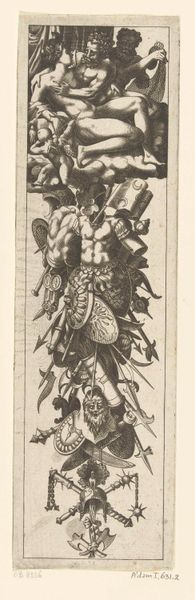 Editor: Here we have Giovanni Battista Piranesi’s etching, "Helmets, dagger, quivers, poker, signs (from the pedestal of the Column of Trajan)." It depicts an array of Roman military equipment with striking detail. What jumps out to me is the level of ornate decoration on objects clearly designed for war. How do you interpret this contrast? Curator: As a materialist, I'm immediately drawn to the process by which Piranesi created this image. Etching and engraving allowed for the widespread distribution of knowledge. Look at these precisely rendered depictions of military artifacts. Who had access to them, and what statement was Piranesi making by circulating these images? Were they meant to inspire, intimidate, or perhaps document a vanishing martial tradition? Editor: That's fascinating! I hadn’t considered the printmaking process as part of the artistic statement itself, only as a means of reproduction. Do you think he was also interested in elevating the status of these functional objects to something worthy of artistic consideration? Curator: Exactly! Consider the materials: iron, steel, maybe leather and bone for the hilts and decorations of these weapons. These were not luxury goods, initially. Piranesi transforms them through his art, prompting questions about the value we place on labor, the role of craft within industry, and how societal structures impact artistic expression. We tend to separate "art" and "craft", don't we? Editor: We do, and often without thinking. So, by showcasing the artistry inherent in everyday objects, Piranesi challenges those divisions? Curator: Precisely. By foregrounding these weapons—tools of Roman military power—he prompts a critical look at the materials, labor, and social structures that sustained the Roman Empire and continue to influence the ways we define and value art. What do you think of this view? Editor: This gives me a completely new perspective! I had seen this as purely historical documentation, but now I recognize how it also comments on social structures. Curator: Indeed, reflecting on Piranesi’s printmaking and these artifacts of production forces us to consider these connections between labor, materials, and society.
