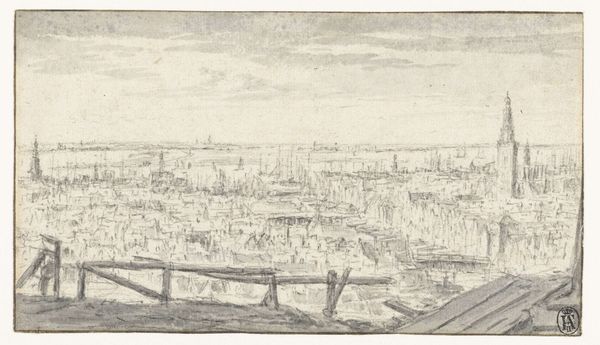 Georges Michel created "Begin van de stad" using graphite, resulting in a study of urban space with a subdued, almost ethereal quality. The composition is structured around a horizon line that divides the sky from the urban landscape below, giving us a sense of depth and distance. Michel employs delicate, linear strokes to define the buildings and structures. Notice how the density of the lines varies across the sketch, creating a textural contrast that animates the scene, evoking a mood that blends melancholy with a sense of historical observation. In the historical context, Michel's work provides insight into the shifting cultural values during a period of rapid urban expansion, suggesting how the formal elements of the drawing contribute to its content, turning a simple sketch into a reflective commentary on urbanization and change. The use of line and light captures the transient state of a city in perpetual transformation, inviting us to ponder the relationship between the built environment and human experience.