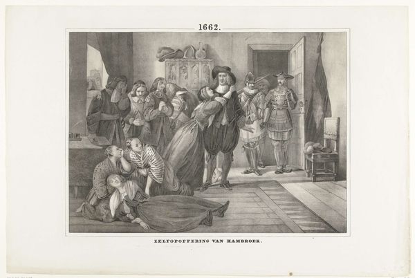 Editor: Here we have Johann Wilhelm Kaiser's engraving, "Bijeenkomst te Dendermonde met Willem van Oranje, 1566", dating from 1847-1849. It depicts a serious gathering of figures. I get the impression of hushed intensity, almost like a clandestine meeting frozen in time. What do you see in this piece, especially beyond just the historical context? Curator: Beyond the history, which vibrates subtly here, I feel the weight of unspoken intentions. Notice the interplay of light and shadow; Kaiser uses it to carve out distinct pockets of emotion within the scene. It's almost like we're peering into the minds of each participant, witnessing their internal dialogues play out on their faces. Have you ever felt caught in the midst of such silent, charged atmospheres? Editor: Absolutely. The lighting definitely adds a dramatic touch. What strikes me is how centered the composition is – with the focus on what I presume are the documents being discussed, like a gravitational pull on everyone's attention. Curator: Precisely! It's more than just documents; they become a mirror reflecting the aspirations, fears, and ambitions of those gathered. Look closely at how the lines of the engraving pull our gaze back to those papers – a clever trick, right? But let’s consider, isn't it interesting how Kaiser chose to render such a politically charged scene in such an…intimate, almost domestic setting? Editor: That's a great point; it creates this fascinating contrast between the gravity of the historical moment and the quiet, closed-door feel of the scene. I hadn’t quite picked up on that. Curator: Art, at its finest, offers endless reflective spaces. Editor: This really makes me rethink historical depictions, moving beyond mere representation into the realm of psychological insight. Thanks!