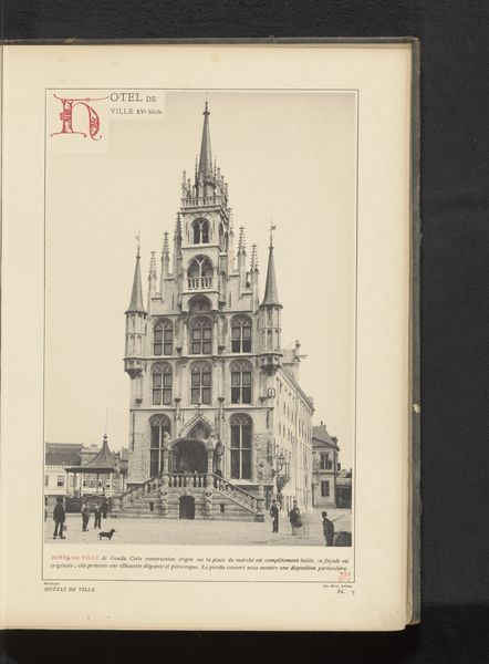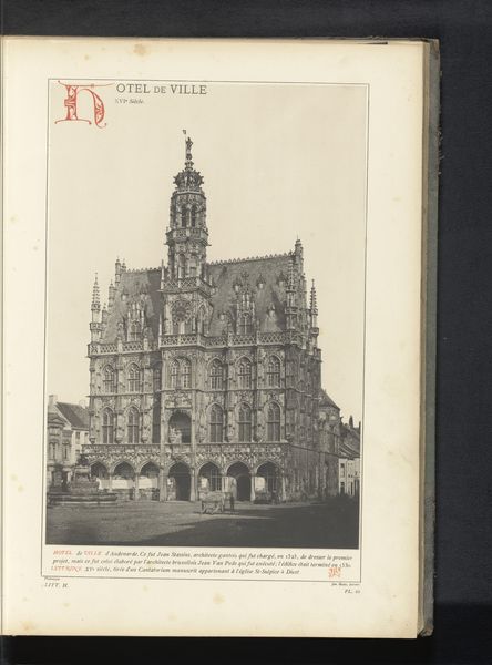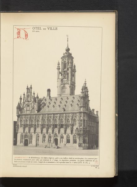 Curator: Looking at this print, "Gevel van het Stadhuis te Oudenaarde," made before 1881 by an anonymous artist, I feel a curious sense of meticulous obsession. Do you feel it too? Editor: It's overpowering! The density of the etching creates a real monumentality, and the social connotations are obvious. Curator: Yes, the layers of ornamentation! It’s almost dizzying, and definitely meant to impress, maybe intimidate? I see echoes of lace making—all those meticulous patterns in the stone rendered so carefully in print. It suggests a reverence, but also, doesn’t it flatten the architecture, rendering stone into mere surface? Editor: Absolutely. Think about the labour invested here! Both the masons shaping the building, and then the engraver who meticulously reproduces every tiny detail. The act of printing transforms this architecture, taking the real stone into reproduced ink... What social dynamics are at play there, in who could afford such art? Curator: Hmm, good point. These kinds of prints democratized architecture— suddenly, one could own an image of grandeur they might never actually see, maybe it offered a sense of belonging and inspiration... a way to imagine their place in a much wider society. Editor: And now we view it divorced from those conditions... but still marvel at its intense detail and how those processes speak across history. Do you think its emotional effect endures beyond its social use? Curator: Definitely. This print whispers about ambition, about pride. Maybe it hints at the artist’s ambition, the building’s function... a collective reaching for permanence, that somehow survived centuries, embodied through graphic lines and an undeniable aesthetic presence. I can almost smell the ink and the stone, all mixed up. Editor: It truly compresses entire lives into a stark representation. Thanks to this print and our discussion of it, these lives continue to have social presence.