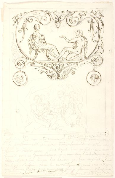 Joakim Skovgaard sketched this design for a book binding in pencil on paper. The sketch features a woman riding a dragon, surrounded by swirling patterns. Skovgaard made this drawing for a book about Lorenz Frølich, and the image creates meaning through a blend of Norse mythology and the decorative arts prevalent in Denmark at the turn of the 20th century. The cultural and institutional context is essential here. Skovgaard was deeply involved in Danish national romanticism. He drew inspiration from Norse sagas and folklore. He taught at the Royal Danish Academy of Fine Arts and contributed to the decoration of public buildings. The design suggests a connection between artistic creativity and national identity, referencing a longing for a heroic past. Understanding this work involves studying the history of Danish art institutions, the revival of interest in Norse mythology, and the political uses of art in nation-building.
