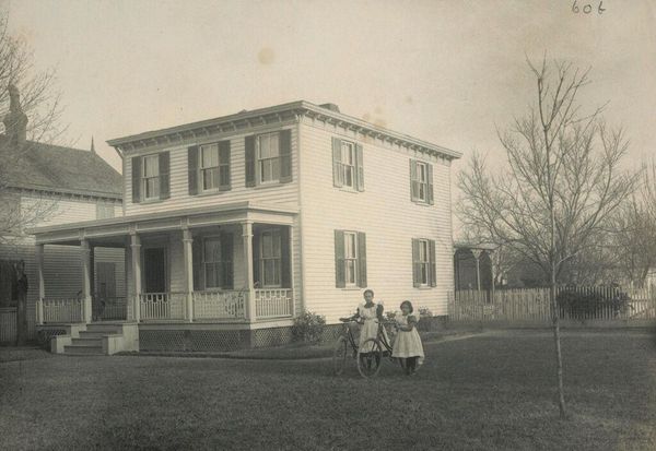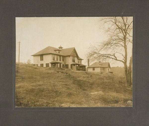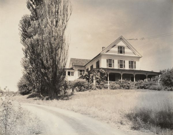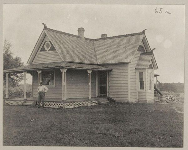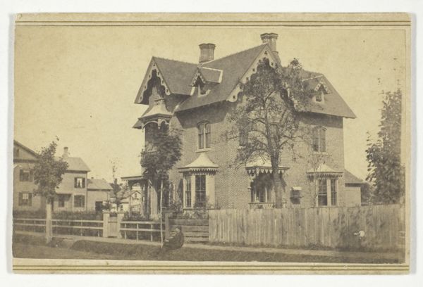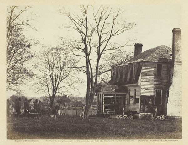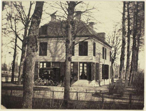 Curator: Here we have a fascinating, albeit stark, photograph titled "Houten huis in Allegany County, Maryland," dating from before 1859. Editor: There’s a stillness to this image that I find deeply unsettling. That old house, stark and pale, dominating the frame, seems to exude a kind of melancholic loneliness, like it’s waiting...for something. Curator: Well, let’s think about the practicalities here. This photograph was produced relatively early in the history of photography. Given the available materials at that time, the camera equipment would've been incredibly bulky. Think of the labor and time involved in transporting, setting up, and then the careful process required to capture a single, static image on a glass plate. It's almost an archaeological record of the making of a family or a building! Editor: Yes, and each scratch, smudge, and tonal shift—born from early photochemical reactions—creates a ghostly beauty. I get a palpable sense of transience, a reminder of time relentlessly moving on, obliterating lives lived, structures built, even landscapes sculpted. Look how the wooden fence looks freshly hewn, clearly important as material object! Curator: Absolutely! The fence does signal ownership, carefully and intentionally constructed, implying both a claim and a boundary within the community. But do you also see how this affects its relation to commerce? Consider the mills for timber... and for grain, just out of frame? It becomes about the expansion of capital, commodifying and creating new relationships of production. Editor: You know, seeing this all... makes me wonder. That house almost vibrates with unseen stories. And that raw materiality... It is an eerie glimpse into the aspirations and hard labor etched into the landscape before our modern hustle. Curator: Exactly. Every step in its creation is a tangible link to a past that feels so immediate through the alchemy of material and chemistry and craft! It offers a profound reminder of the intricate connection between our own history and our material world.
