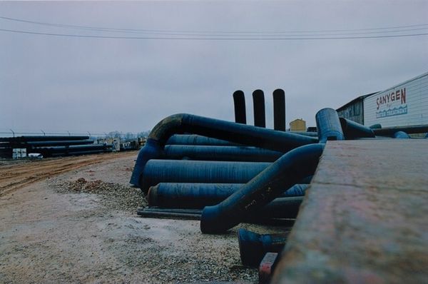Editor: Carey Young’s photograph "Body Techniques (after Sculpture II, Kirsten Justesen, 1969)" shows a figure collapsed on an empty road. It’s quite striking. How do you interpret this work in the context of gender and performance? Curator: The original performance by Justesen was an exploration of female identity in sculpture. Young's re-staging, particularly within this stark, almost industrial landscape, invites questions about power, visibility, and vulnerability within contemporary society. Editor: So, the figure's pose is less about surrender, and more about resistance? Curator: Perhaps, or maybe a commentary on the physical and psychological demands placed on bodies, particularly in corporate environments? It reminds us to question the spaces we inhabit and their effects on our sense of self. Editor: That's a powerful point. Thanks, it really changes my perspective. Curator: Absolutely, art should prompt these critical dialogues.