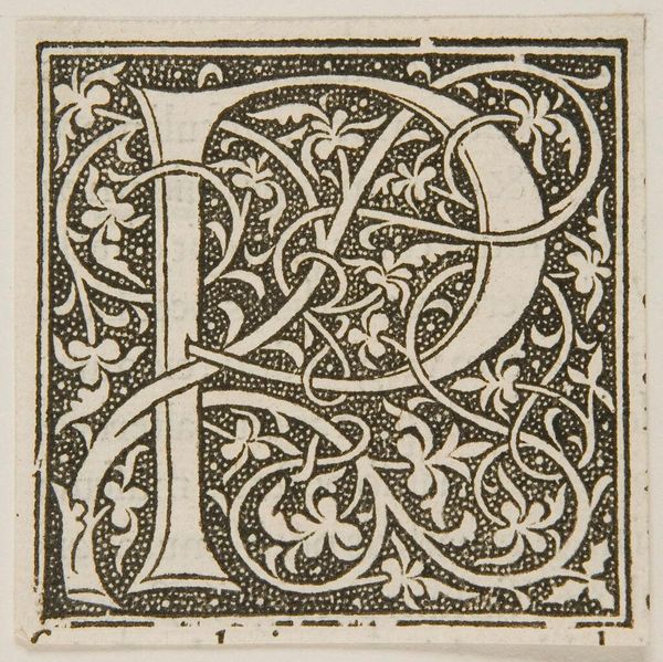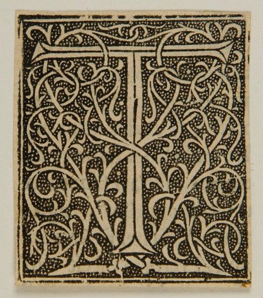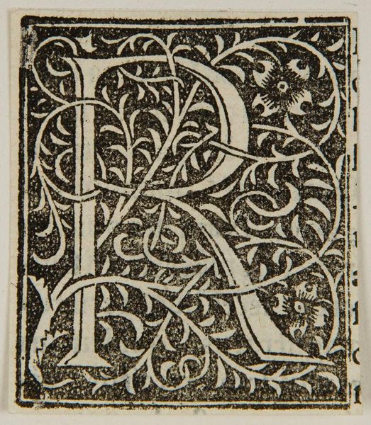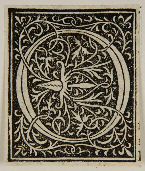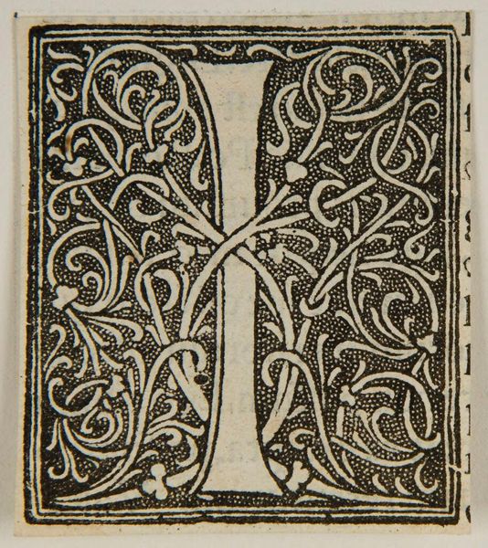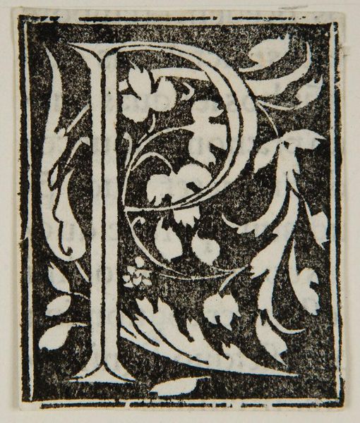 Editor: This intriguing piece, "Initial D," by an anonymous artist, presents a letter enmeshed in intricate foliage. What symbolic weight do you feel it carries? Curator: The letter itself, embedded within such dense, organic forms, speaks to a cultural memory of illuminated manuscripts. The initial marks not just a word, but a portal, wouldn't you agree? Editor: Yes, it suggests a gateway to a story or a new beginning. How does the interplay of black and white contribute? Curator: The stark contrast heightens the symbolic tension. Light, knowledge, emerging from the darkness of the unknown. It evokes a sense of revelation, doesn't it? Editor: Absolutely, and it makes me think about the power of words and their origins. Curator: Precisely! The image reminds us that even simple forms hold complex cultural echoes.