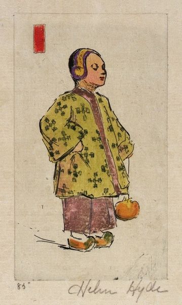 Curator: Consider the caricature, entitled "Caricature of Mily-meyer in 'le Rire,'" crafted in 1902 by Leonetto Cappiello, employing drawing and print mediums. Editor: The stark lines and muted colors, predominantly in gray and beige tones, make for an unusual choice for a caricature, lending it a slightly unsettling feel. It’s like a political cartoon stripped down to its essential forms. How would you interpret the impact of this visual choice? Curator: Focusing on form, notice the exaggeration of bodily features, especially the bust and chin, against the simplification of other areas. What is the relationship between the artist's expressive use of line and shape versus the potential cultural significance this might signal? Editor: Good question. The disproportionate features draw the eye and create an immediate sense of exaggeration, as opposed to realism. The lines appear bold, but the choice of paper is almost gentle. Curator: Yes, this tension creates a critical aspect to its interpretation. Consider the surface: the paper appears aged and textured, contributing an archival feel that emphasizes the graphic and linear. This materiality enhances our awareness of the print’s inherent flatness, directing our attention toward the rhythmic interplay between the subject's silhouette and the framing space. Editor: It's as if the artwork calls attention to its very construction, from the choice of media to its physical form, highlighting its artistic intention. Curator: Precisely! Cappiello encourages an engagement with the print as an object. By reflecting on these properties, it might give insight into our own interpretations of what is presented, versus what it means. Editor: Thank you! This definitely broadened my perspective on appreciating not just what's depicted, but how it's depicted, so the artistic components. Curator: Likewise, reflecting on the piece alongside your questions highlighted aspects of materiality and form I hadn't considered.