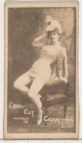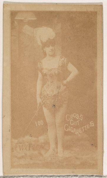 This small promotional card titled "Miss Fox" was issued by Duke Sons & Co., around the turn of the century, as part of a series to promote Cross Cut Cigarettes. These cards were made during an era marked by rapid industrialization and evolving social norms, including shifts in the representation of women in advertising and popular culture. The image presents Miss Fox, an actress, seated in a somewhat provocative pose on a plinth advertising cigarettes. This conflation of female allure with consumer products speaks volumes about the commercialization of identity at the time. These cards were designed to be collected, traded, and even used in games, embedding consumerism into everyday social interactions. This piece offers insight into the historical construction of femininity and the marketing strategies that shaped consumer behavior during a pivotal period in American history. It’s a reminder of how deeply intertwined identity, commerce, and representation can be.