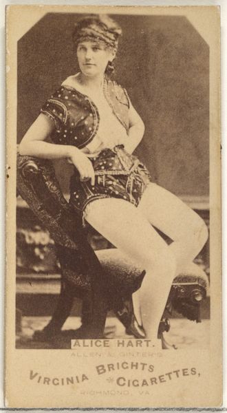 This is a promotional card for Cross Cut Cigarettes, issued by Duke Sons & Co. in the late 19th century, featuring actress Minnie Steele. These cards offer insight into the era’s cultural values and emerging advertising strategies. The image presents Steele in theatrical costume and pose. Tobacco companies, keen to associate their products with glamour, frequently used popular actresses to promote their goods. The cards were inserted into cigarette packs, encouraging repeat purchases and fostering brand loyalty. This conflation of entertainment and consumerism reflects the growing commercialization of leisure and celebrity culture in the Gilded Age. Further understanding of the social and institutional contexts of this card requires delving into archives of advertising history, theatrical ephemera, and business records of tobacco companies. Through such research, we can begin to grasp the complex interplay of commerce, entertainment, and social values that shaped the visual culture of the period.