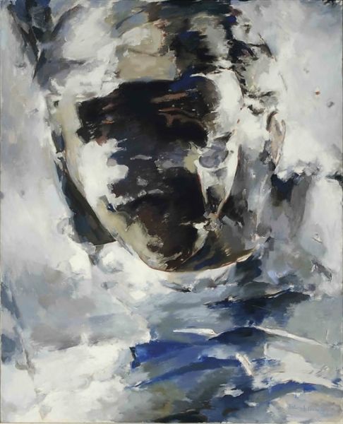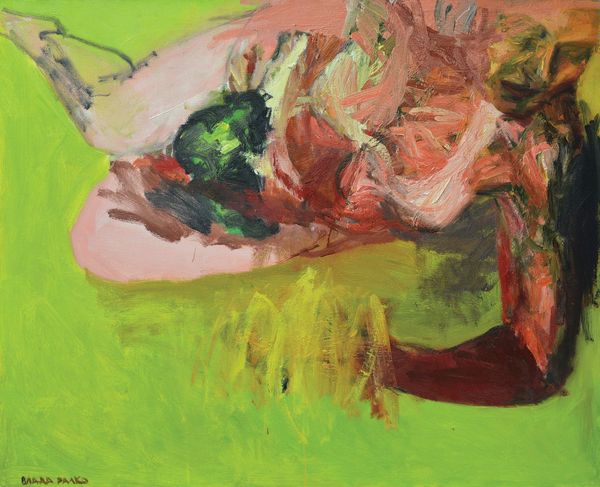 Curator: We’re looking at "Wait for Me Here" by Vlada Ralko, an oil painting from 2006. My first impression is… melancholy. A figure, or suggestion of one, emerges from a murky background. It feels like a half-remembered dream. Editor: Yes, a poignant piece. The brushstrokes are so visceral, you can almost feel the weight of the oil paint on the canvas. Considering Ralko’s body of work, it's hard not to read this through the lens of sociopolitical anxieties of post-Soviet Ukraine. Curator: You see that fragility in the materials themselves? The thick impasto and muted colors—greens, grays—almost give a sense of decay. Like something being unearthed, or perhaps slowly fading away. It evokes a raw kind of process, laboring to come forth but already fading. Editor: Exactly! It speaks to the precarity of identity, the feeling of being caught between different worlds, different historical narratives. The figure seems to be suspended, caught in a moment of expectation, that “wait” isn’t passive. It’s active; a struggle. Consider what she asks from us as the viewers as she commands this “wait”. Who is waiting? Who are we asked to await? Curator: The title takes on another layer with that in mind, a loaded imperative to “Wait for Me Here” implying there’s a shared experience, almost, maybe a shared struggle against dissolution and displacement. But the fact that it’s oil paint too - so traditionally associated with power and permanence – being used to depict such uncertainty seems rather interesting in its process. Editor: Right. The act of painting becomes a site of resistance. The figure isn’t neatly defined; it's fragmented, questioning those very concepts of stable representation. What are the gendered and raced expectations when such forms emerge in art? Curator: The choice of oil becomes quite important, with the lengthy drying time it forces an endurance and acceptance, but on the other hand we return back to my impression of slow decay with those muddied shades. It might give the appearance of decay or suggest the slow churn of oil’s geologic formation, something literally pulled up from beneath the earth that embodies its temporality and the deep time that is expressed. Editor: Looking at it now, “Wait for Me Here” invites conversations, with an appeal that's intensely relevant today given continuous displacement and migration in the area and across the world. The painting provides the need to reckon with how we perceive and engage in relation to political uncertainty and hope. Curator: Ultimately, it's a meditation on process that encapsulates not just creation but time as a raw material and social conditions being translated materially into the finished work. Editor: Precisely. The waiting becomes a powerful act in its own right.