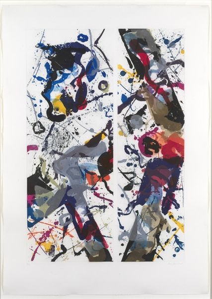 Sadamasa Motonaga made this artwork, Sakuhin, with paint to create the image you see here. It’s all about letting go, you know? Like, what happens if you just let the colors bleed and drip? The materiality of this piece is where it gets interesting. The paint isn't trying to be anything but itself. Check out how the red sort of pools and stains, then drips down, thin as anything. It's like he's just saying, “Here’s the paint, see what it does.” It's kind of beautiful, right? Especially the contrast with that blob of yellow, sitting all bright and perky at the top, against the more melancholic blacks and reds. Motonaga, like Helen Frankenthaler, was all about pushing paint around, seeing what happens. It's a kind of experimentation that embraces the unpredictable. And, you know, that's what makes art cool – it's not about having all the answers, but about asking good questions.