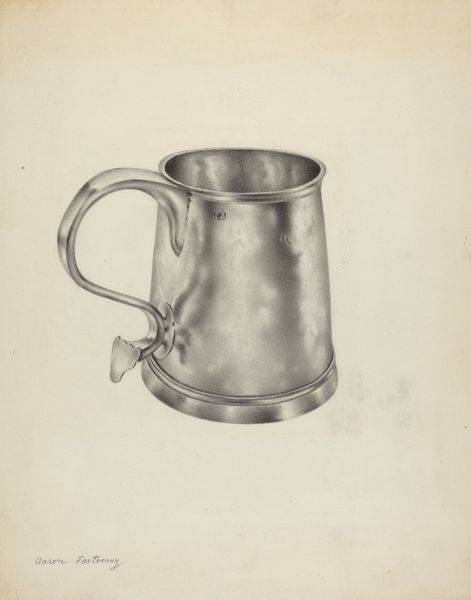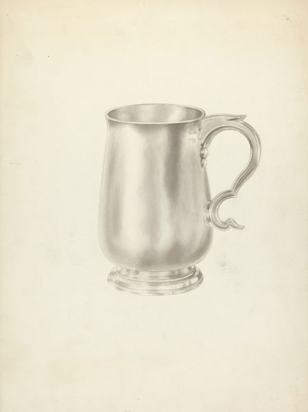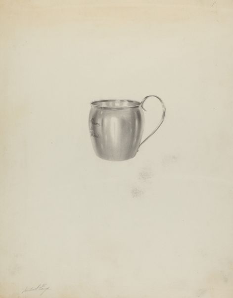 Henry Granet's "Silver Mug," is rendered with graphite on paper, presenting a study in light and form. The mug commands the composition with its cylindrical body and elaborate handle. Granet masterfully uses graphite to mimic the sheen of metal, varying pressure to suggest reflected light. The mug's simple form belies a complex interplay of light and shadow, challenging our perception of everyday objects. We can see this in the subtle gradations that define the mug's curvature and the contrast between the luminous highlights and deep shadows, which imbue the drawing with a tangible presence. The choice of such a mundane object elevates the ordinary to the extraordinary, inviting us to reconsider the aesthetic potential inherent in the everyday. This work underscores the idea that art need not depict grand subjects to provoke profound contemplation. Instead, it is through Granet's meticulous technique and thoughtful composition that the mug becomes a vehicle for exploring themes of perception, representation, and the inherent beauty of the material world.