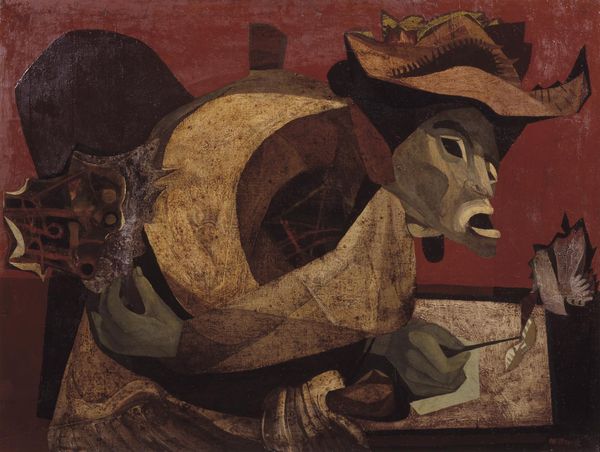 Editor: Here we have Max Ernst's "Celebes," currently residing at the Tate Modern. The... machine-like elephant form is captivating. What do you see in this piece, especially concerning its materiality? Curator: Ernst’s use of oil on canvas transforms industrial imagery into something almost organic. The "elephant" itself, fabricated perhaps from metal scraps and wartime remnants, questions the boundaries between the manufactured and the living. How does that tension strike you? Editor: It makes me think about the societal embrace of technology versus its inherent coldness, especially after the World Wars. Curator: Precisely. Ernst's work embodies the anxieties and the fascination with technology that defined the era, reflecting upon labor, consumption, and the very materials of our world. Interesting, isn't it? Editor: Absolutely, I'll never look at machinery the same way again!