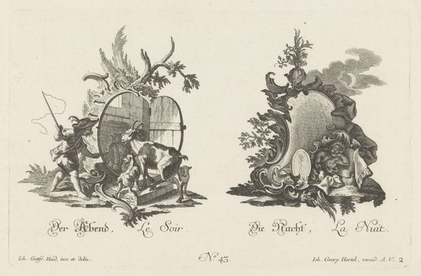 This print, “Ochtend en middag,” or “Morning and Noon,” was made by Johann Matthias Steudlin with etching and engraving, sometime in the 18th century. The printmaking processes used here were crucial to the circulation of images in early modern Europe. The artist would have used sharp tools to cut lines into a metal plate. This painstaking work required an understanding of the qualities of the metal, and the tools used to manipulate it. Note the contrast between the delicate, flowing lines that frame the cherubic figures, and the dense, parallel marks that create areas of shadow. These differences in technique give the print depth and texture, distinguishing forms from one another. The use of printmaking emphasizes the commercial aspect of art production. By creating a reproducible image, Steudlin was able to reach a wider audience and capitalize on the demand for decorative and allegorical images. This print would have been relatively inexpensive to produce, and easy to disseminate. The amount of work involved in the production process allowed the print to appeal to consumers of all social classes.