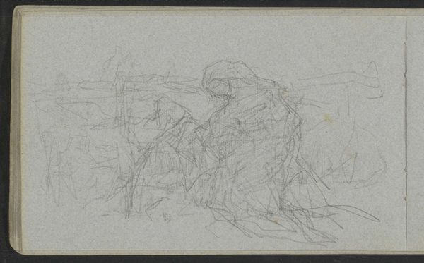 Editor: Here we have "Man en vrouw," or "Man and Woman," a pencil drawing on paper, by Matthijs Maris, created sometime between 1849 and 1917. It's such an understated piece, almost a whisper on the page. What do you make of this intimate glimpse into what seems like the artist's personal sketchbook? Curator: Oh, it's a world of reverie, isn't it? A half-formed thought given shape. For me, it’s like stumbling upon a dream, barely remembered upon waking. See how the figures seem to emerge from a cloud of graphite, indistinct yet present? Editor: Yes, the looseness of the line work gives it such a transient feel. I keep looking for a focal point, but my eye just floats around. Curator: Exactly! And that's precisely where its charm lies, I think. Maris was less concerned with precise representation and more invested in capturing an essence, a feeling. Think about how our own memories fade and shift. Perhaps that’s what he's echoing here, this fragile and elusive recollection. Does it perhaps hint at the fleeting nature of relationships themselves? Editor: That’s a lovely thought. It really does invite contemplation, despite its simplicity. I initially saw it as unfinished, but now, I appreciate that the lack of resolution is the point. Curator: And that ambiguity, that openness, is what makes it so captivating, don't you think? It's not about *what* they are doing but *how* they make us feel. Editor: I do! I came in with preconceived ideas, and now I see a far deeper narrative than expected, woven into the graphite. Curator: Precisely. It is but a gentle reminder that true art often resides not in flawless execution, but in the evocative power of suggestion.