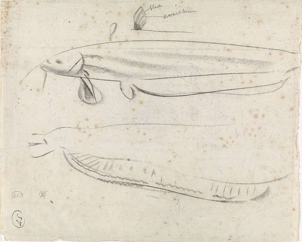 Curator: Let's turn our attention to "Titania's Left Arm, for 'Titania's Court'," a drawing by Washington Allston. Editor: It's a whisper of a drawing, isn't it? So delicate, like a phantom limb reaching out from the past. I wonder what she was about to touch? Curator: The structural rendering is quite precise, focusing on musculature and skeletal form. The arm's positioning suggests intent, almost as if Allston deconstructed the complete Titania to isolate the most expressively charged part. Editor: Yes, I see that intent. There is a certain vulnerability to it, too, in its incompleteness. You know, it feels like a fragment of a dream, a tantalizing glimpse into Allston's creative process. Curator: Indeed, and its diminutive scale invites close inspection, a concentrated aesthetic encounter. Allston really knew how to capture light. Editor: It certainly captures something...I keep thinking about what that finger is trying to reach. Thanks for pointing this one out. Curator: It's been a pleasure. Hopefully, our listeners gained a fresh perspective on Allston's work.