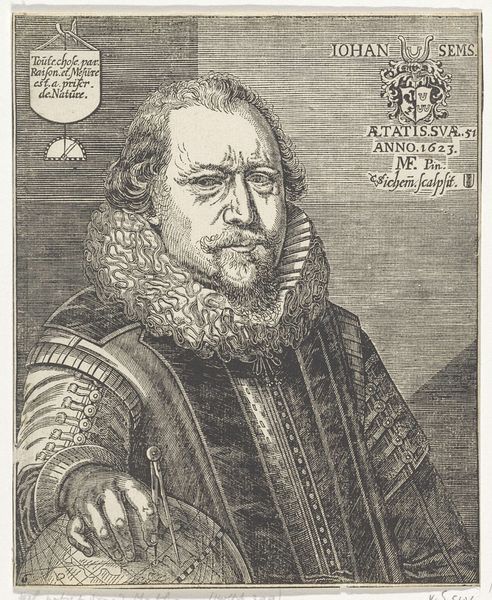 Conrad Grale created this print, "Portrait of Paul Laurentius," using engraving. The severe ruff collar and the book held in Laurentius's hand are rich with symbolic meaning, reflecting the sitter’s scholarly and religious standing in the 17th century. These visual markers are not isolated to this time; the ruff, for example, evolved from earlier, more modest neck coverings, growing into an ostentatious symbol of status seen across Europe. Similarly, the book, an ancient symbol of knowledge, reappears through centuries—from sacred texts in medieval icons to the secular volumes held by Enlightenment thinkers. Such recurring motifs tap into a form of cultural memory, stirring emotions and associations linked to learning, authority, and spiritual insight. Over time, the meaning shifts, but the underlying psychological impact persists, engaging viewers on a subconscious level as symbols evolve and are passed down, demonstrating how images transcend time, connecting past and present.