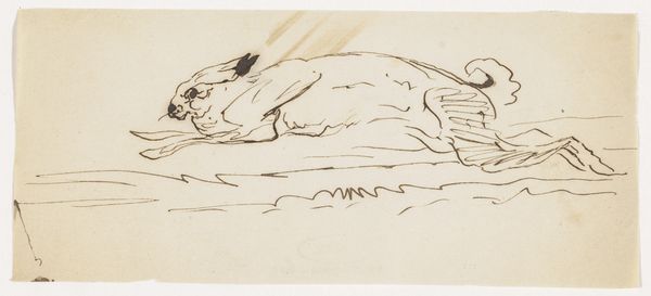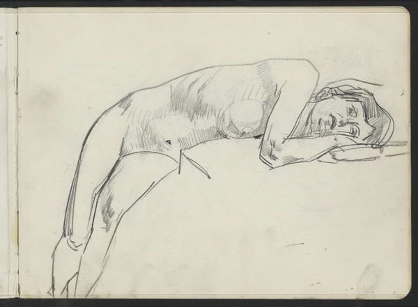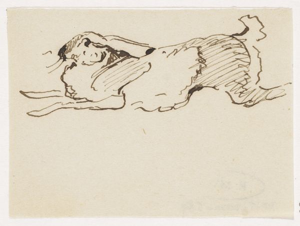 Rik Wouters created this drawing of his resting cat, Flip, using ink on paper. It is an intimate look into the artist's domestic life, made with simple materials of everyday use. The rapid strokes of ink across the page convey a sense of immediacy and a deep understanding of the medium. Wouters uses the fluidity of ink to capture the form and texture of the cat's fur, suggesting the animal's soft, relaxed posture. The artist's choice of such a commonplace subject elevates the ordinary, finding beauty in the simple act of a cat sleeping. Unlike traditional academic drawings, this piece embraces a raw, sketch-like quality. The swift application of ink reveals Wouters' mastery of technique, turning the mundane into a moment of artistic expression. This reminds us that art isn't confined to grand subjects, but can be found in the everyday, blurring the lines between high art and the humble beauty of domestic life.