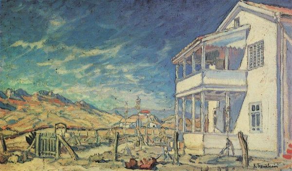 Curator: Here we have Boris Kustodiev's painting, titled "Catching of Homeless Dogs." Painted with oil, this work brings a captivating genre scene to life. Editor: Immediately, I'm struck by the dynamism of the composition, a sort of organised chaos in the heart of the city with a palpable feeling of harsh everyday life. The texture of the oil paint contributes significantly to that rawness. Curator: Indeed, if we look closely, Kustodiev really emphasizes the texture. He presents what seems like the everyday life and labor within Russian society, making visible a system and a structure and its interaction with those at the lower end of its social hierarchy, such as the people responsible for the captured dogs. The dog-catching trade is shown, but Kustodiev allows us a glimpse into urban trades, the materials that mark daily activity, and the types of exchanges involved. Editor: It certainly goes deeper than a surface-level depiction. Focusing on the symbols though, look at that cage, the bars representing captivity but also an interesting social paradox; shelter through capture. The city itself acts as a character in this theatre, a stage where humans, animals, and their stories all intertwine. The towers hint at higher orders and spiritual realms set against the crude everyday actions below, too. Curator: That interaction with spirituality juxtaposed with earthly survival echoes in the physical act of painting. The strokes and colors that Kustodiev uses remind the viewer of what's taking place; materials and humans collide. From where does his value system emerge when faced with depicting what the underbelly of life entails, who the individuals caught at the hands of others are? How does this influence how society is run? Editor: So much of the painting directs us back to these deeper ideas and it evokes such potent symbolic narratives—oppression, hope, struggle, resilience; such a layered piece of social commentary through its imagery! I was pulled in, in an almost visceral sense of time and location. Curator: I agree completely. The painting leaves us considering the ways that urban systems are constructed around its inhabitants and resources, both animal and human. The making of the city is just as revealing as the city itself. Editor: For me, the genius lies in Kustodiev's ability to encapsulate such sprawling human themes within such a singular, unforgettable visual statement.