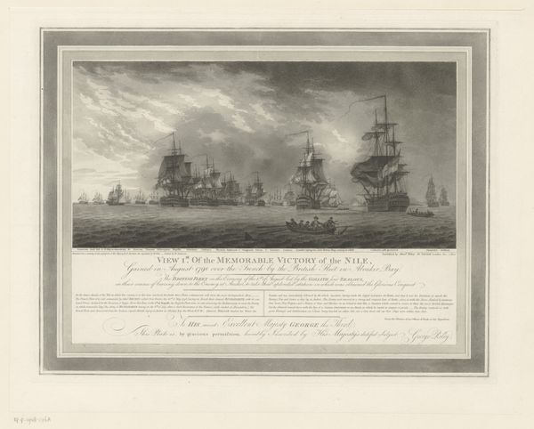 Dirk de Jong's "Gezicht bij Den Helder" offers a meticulously rendered scene, employing engraving techniques to capture a detailed coastal view. The work is dominated by a sharp contrast of light and shadow, accentuating the marine vessels and the play of light on water. The artist's focus on linear precision and tonal gradations constructs a composition that uses the principles of formal structure. Notice how the vertical masts of the ships and the wooden piers interact with the horizontal expanse of the sea, dividing the space into distinct yet interconnected segments. The radiating sun bursts through the clouds, symbolizing enlightenment, but also serve to unify the composition, guiding the viewer's eye across the pictorial plane. The meticulous detail and structured arrangement suggest an exploration into the relationship between nature and human intervention, a theme of the Enlightenment. Through formal decisions, de Jong prompts us to contemplate how such visual constructs not only represent reality but interpret and shape our understanding of it.