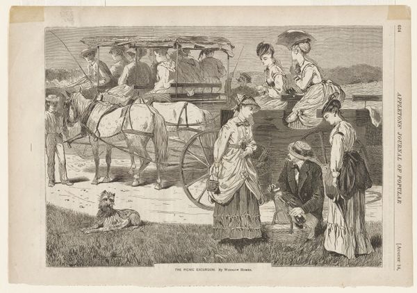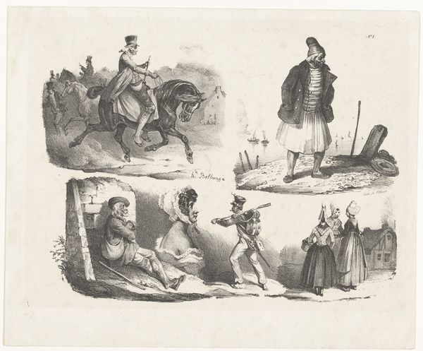 Curator: I’m struck by the gloom in this piece. It’s like the artist sucked all the light out of the world and left behind just this stark, melancholic gray. Editor: Indeed. What we’re looking at is an engraving by Willem Steelink II, titled “Spotprent met begraving van wetten,” which translates to "Caricature with burial of laws". Created before 1886, it’s a fascinating piece of political satire rendered with ink on paper. Curator: Satire’s often sharp and funny. This feels…more mournful, like the end of something precious, not just something ridiculous. It evokes an old tale. Editor: Well, consider the context. Steelink was operating in a time of great socio-political upheaval in the Netherlands. This piece, with its depiction of a literal burial of laws, reflects anxieties around changing legal systems and perhaps even the decline of traditional values. See how various figures, possibly representing different factions or political players, are involved in this somber procession? Curator: Yes! A proper funeral, really. Some are weeping openly and others dance around a column in joyous mockery! Editor: That column seems to bear a striking inscription too. It would have helped guide the intended viewers, in the moment. But zoom out. Note how the composition directs your eye. From the chaos on the left to the silent grave. Even the jester looking on suggests societal upheaval. There’s a phrase above the wall near the open grave... 'Hodie mihi, cras tibi,' isn't it? 'Today for me, tomorrow for you.’ Chilling stuff. Curator: It is chilling! The jester, though…he's placed up and away in the top-right corner! I wonder, is this a message of warning from the past or some sort of inevitable fate for our own societies? I like that! I love that. I hadn't thought of it in so directly an analogous way. It makes this older piece so relevant. Editor: These anxieties about political change certainly endure. It's fascinating to observe the impact these narratives have, spanning from 19th-century debates to our present-day challenges. Curator: Absolutely. The weight of those coffins and the casual grave dirt feel eerily relatable—especially when considering contemporary systems collapsing left and right. Steelink really got to the emotional core of a political transition. Editor: Definitely a conversation starter—and a stark reminder of how anxieties surrounding social transformation transcend time.