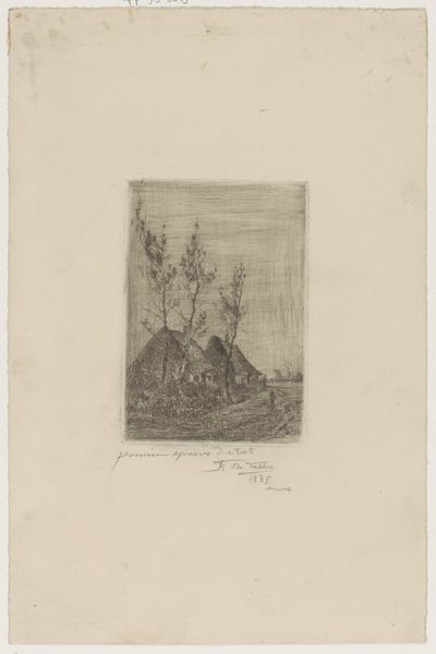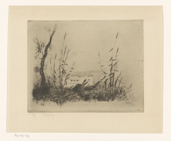 T. Sterrenburg made this print, "Bosgezicht," with ink on paper, and it's like he’s showing us how to look, or, more accurately, how to *find* something to look *at*. See how the lines aren't precious? Like they're just there to get the job done. He’s scratching out the scene, digging into the plate, letting the needle wander and wiggle and stumble over the surface. The trees aren't heroic, or even particularly distinct, but that’s the point, right? It’s the *forest*, not the trees. I love the way the dark marks cluster at the bottom, anchoring the whole scene, like roots holding everything in place. It reminds me a little of Whistler, who also knew how to make the ordinary seem magical with just a few well-placed lines. It’s a reminder that art isn't about perfect representation, but about finding the extraordinary in the everyday.