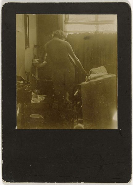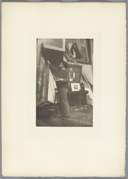 Curator: This etching, created before 1913 by Arthur Puls, is titled "Man kijkt door het raam van een wisselkantoor," or, "Man looking through the window of an exchange office." Editor: Oh, a solitary figure gazing into a currency exchange. It strikes me as wistful, even melancholic. He seems utterly absorbed, his figure so muted it's almost ghostly against the busy storefront. Curator: It’s compelling to consider how this work resonates with contemporary anxieties around economic precarity and the gaze of surveillance capitalism. The man is quite literally looking at a site of economic exchange, but he’s also on display, within our sightline as viewers and likely visible to others in the depicted space. Editor: Visible, yes, but disconnected. Notice how Puls renders the window: it's less a transparent portal and more a gauzy barrier. The man seems isolated, both from the financial activity inside and perhaps from the wider world itself. Is it just me, or is there something almost Beckett-esque about the composition? Curator: It’s quite poignant. Considering its creation prior to World War I, we can perhaps view the image as speaking to broader anxieties about shifts in global power structures and emerging forms of financial capitalism. This exchange office represents one node within a much larger and increasingly complex global network of monetary exchange. Editor: And he’s left outside, looking in, excluded, or perhaps choosing to remain apart from the frenetic dance of currency and commerce. I like the realism of the piece, though there's this almost dreamlike quality about it, like a half-remembered scene glimpsed through fog. Curator: Right. The technique Puls employed – the fine lines of the etching – really contributes to this somewhat blurred effect, creating a sense of distance and detachment. The "changes" offered inside the bureau allude to broader economic and societal changes underway. Editor: I think I'll carry that image of the blurred, slightly out-of-reach window with me. It speaks to how we’re constantly confronted with worlds we can observe but not necessarily enter or control. Thanks for pointing out all the nuances, it shifted my perspective. Curator: It was my pleasure, it’s rewarding to discuss the ways these older artworks intersect with and inform contemporary perspectives.