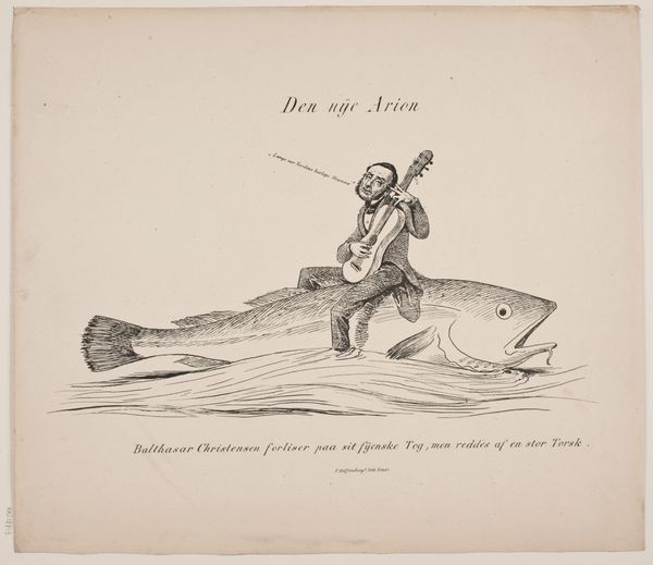 Editor: So, we’re looking at Henry Louis Stephens’ "Gudgeon and Shark," a print from 1851. It’s quite striking; the anthropomorphic fish give it an almost satirical edge. What do you see in this piece from your perspective? Curator: Well, I see a pointed commentary on social hierarchy and exploitation, typical of mid-19th-century caricatures. Notice how the 'shark' sports the head of what appears to be a member of the upper class. What social messages do you think Stephens is trying to get across? Editor: I hadn’t really considered that, I just saw the funny aspect of human heads on fish! But, if the shark represents the upper class, then the gudgeon, dressed so formally, maybe is trying to mock a stuffy middle class? Curator: Precisely! Stephens is playing with recognizable visual tropes. Consider the title, linking a 'gudgeon,' known for being easily tricked, to the ‘shark’ - a predator. It's more than just funny; it critiques the relationship between the powerful and the vulnerable. Are there other visual clues you see? Editor: The color, perhaps? The shark seems drab, while the gudgeon is colorful and detailed... but also clearly about to be eaten! Is Stephens maybe also implying something about appearances being deceptive, and who has the power to consume and dominate? Curator: Absolutely, and the Romanticism tag in the metadata can be explored here. This movement valued emotional expression and a connection to nature. Here it contrasts, though. Does this contrast highlight something more sinister about human nature, exploiting the vulnerable even within a picturesque setting? Editor: That's fascinating! I came in thinking it was just a funny picture of fish, but I now see how the artwork makes us examine social inequality! Curator: Indeed! Stephens is making sure his audience, through laughter, might reconsider some harsh truths about the society around them, and perhaps reflect on the role of popular imagery in shaping such perceptions.