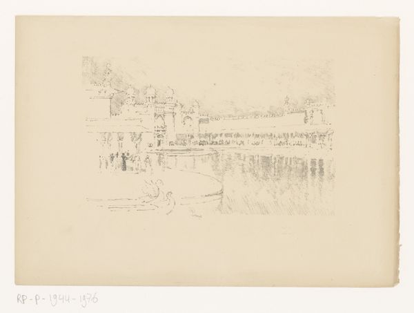 Léon Dolez created this etching of a canal with a tower in the background in the late 19th century. During this period, European art frequently turned to depictions of the landscape, often idealizing the relationship between nature and the burgeoning urban environments. Here, Dolez presents us with a tranquil scene, but it's worth considering how the canal itself—a human-made structure—shapes our understanding of the natural world. The canal facilitates trade and movement, reflecting the changing economic and social landscape of the time. The artist shows the canal as a mirror, reflecting the tower and trees, perhaps suggesting a desire to harmonize urban development with the existing environment. Canals often served as dividing lines, separating different social classes or districts, reflecting the inequalities inherent in the rapidly changing urban landscape. The emotional resonance of this image lies in its tranquil beauty, but it invites us to reflect on the complex relationship between progress, nature, and the social fabric of the time.