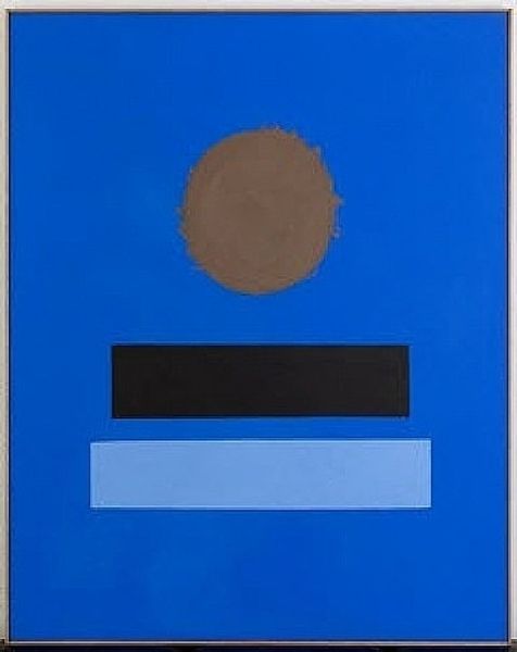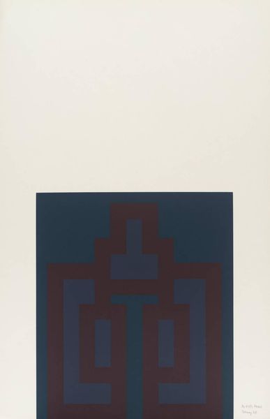 Editor: So, this is Ian Tyson's "No. XIII," and it's held at the Tate. Those blocky shapes—blue, grey, white—give it a sort of minimalist, almost pixelated feel. What do you see in this piece? Curator: Ah, yes, Tyson. It’s funny, isn't it? The digital age before the digital age, perhaps? It makes me think of ancient glyphs, or maybe a simplified chair. But more than that, I see a quiet sort of defiance in its simplicity. What does it evoke for you? Editor: Defiance, that's interesting! It felt more like quiet contemplation to me, but I can see how the bold simplicity could be a statement too. Curator: Precisely! Art's beauty lies in the eye of the beholder, doesn’t it? These little visual journeys are a treat.