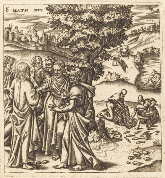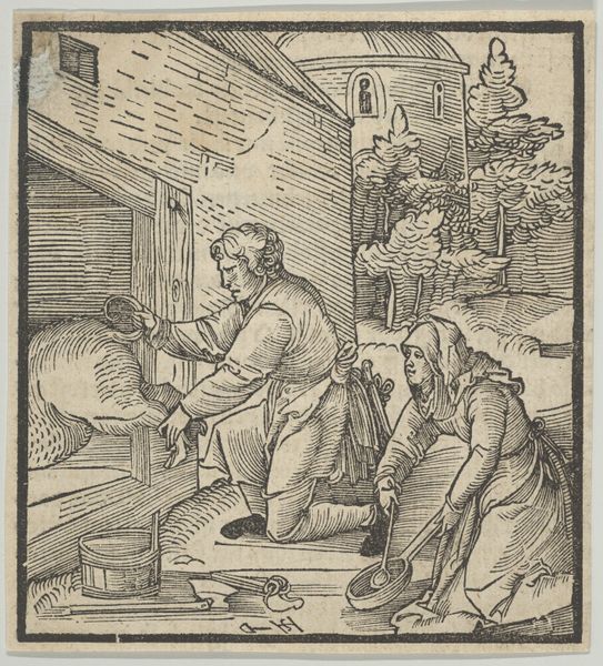 Editor: We're looking at Albrecht Durer's "The Schoolmaster," a pen, ink, and woodcut piece from 1510. I’m struck by the contrast between the detailed figures in the foreground and the more abstracted landscape behind. What's your take on this, from a historical perspective? Curator: Durer was deeply interested in representing the world around him, but his work was also very much informed by the socio-political environment. Consider the rising literacy rates at the time and the shift in power from the church to secular institutions. How do you think this piece might be engaging with those societal changes? Editor: Well, you've got the schoolmaster as the central figure, rather than, say, a religious icon, so maybe it's saying something about the growing importance of education and humanism? Curator: Precisely! And consider the visual construction: Durer is placing the figure of the teacher in a formal composition. The institution of learning itself is being elevated to a point of social and political prominence. And the use of print – making it accessible to a wider audience – speaks volumes about the democratization of knowledge. Do you find any hints of criticism or satire here? Editor: Perhaps in the teacher’s rather severe expression? Maybe Durer's commenting on the potentially stifling aspects of formal education. Curator: Indeed! By embedding the school scene within this organized landscape and contrasting his figure's expressions, Durer subtly critiques this emerging institution. The 'schoolmaster' becomes a mirror reflecting shifting cultural values. Editor: That makes me see it differently! I was so focused on the artistic skill, but now I realize how much it says about society at the time. Curator: Absolutely! Art isn’t just about aesthetics; it's a historical document reflecting the dynamic interplay between power, knowledge, and society.
