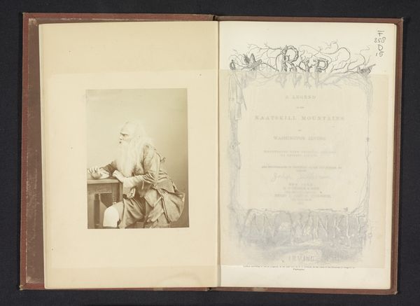 Curator: What a striking photographic portrait! This is “Portret van Charlotte Elliott,” dating from before 1871. The image itself is striking, presented in a small album alongside her printed “Poems”. Editor: The somber tones immediately capture my attention. Despite being a portrait, it has a contemplative, almost melancholic air, amplified by her dark dress and the shadowed backdrop. There’s a stillness in her gaze. Curator: Portraits like these served specific social functions, particularly in memorializing figures and solidifying societal roles. Presenting her alongside her works underscores the cultural and moral influence attributed to women of letters, or otherwise artistically accomplished women, during this era. Editor: Absolutely, her attire, complete with lace and bonnet, speaks to the expected modesty and status. And books too function as symbolic props in many portraits – it is a deliberate choice, signaling her literacy, intelligence, and moral character to any viewer. I find that the arrangement on the table – the floral detail with an indistinguishable sculpture– creates a miniature stage set of symbolism around her. Curator: Indeed. And photography itself, especially as it gained popularity, was instrumental in disseminating these carefully constructed public images. Albums such as these helped establish and reinforce social norms by portraying respected members of the community. Think of it in terms of very early "public relations". Editor: You know, seeing it framed this way makes it so personal—like holding a memory in my hands. The slightly faded image adds another layer of poignancy. Her gaze is directed towards us and perhaps is a bid for immortality; however modest, her place assured. Curator: Well said. It also shows the cultural desire to publicly display moral probity as an inherent function of photography. Editor: Precisely. All this careful curation shaping what is passed on! Curator: The convergence of material culture, artistry and cultural identity is a captivating view in the historical rear-view mirror! Editor: Indeed! Thank you.