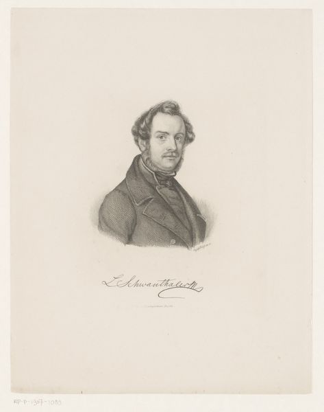 This is William Colley Wrankmore’s portrait of Uffo Daniel Horn, rendered with delicate precision in etching. The composition immediately presents us with an interplay of lines and forms. The subject is neatly framed within an octagonal border, a geometric structure that contrasts with the organic fluidity of Horn’s figure. Wrankmore's masterful use of hatching and cross-hatching breathes life into the image, creating a rich tapestry of light and shadow. The lines build volume and texture from Horn's hair and beard to the soft folds of his clothing. The gaze is directed off to the side, fostering a sense of depth and introspective contemplation. It is as if Horn exists in a liminal space, caught between the structured world of the frame and the boundless realm of thought. Consider how the artist uses the semiotic weight of the portrait genre itself. Historically, portraits have been used to affirm identity and status. But here, Wrankmore seems to be exploring something more subtle. The precision of line and the careful modulation of tone suggest that meaning is not something fixed. Instead, it emerges from the dynamic interplay of form, representation, and interpretation.