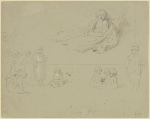 Editor: So, this is "Sheet with studies of labourers", created between 1840 and 1880 by Johannes Tavenraat. It's a pencil drawing on paper. I find the sketch-like quality so evocative, like we're getting a glimpse into everyday life, but there's a slight melancholy to it, almost anonymous. What do you see in this piece? Curator: This work is compelling because it invites us to consider the narratives often left out of grand historical accounts. Tavenraat’s focus on laborers asks us: Whose stories are deemed worthy of representation? Consider the period—the 19th century was a time of immense social upheaval, industrialization, and burgeoning class consciousness. How does Tavenraat’s choice of subject matter challenge or reinforce existing power structures? Is he romanticizing labor or simply documenting it? Editor: That's interesting. I hadn't considered the social context so directly. It feels like a straightforward depiction. Curator: But is it *really* straightforward? Look closely. What details does he emphasize? How does he depict the individual versus the collective? Consider that even seemingly neutral observations are always filtered through the artist’s perspective and the prevailing ideologies of the time. Understanding this helps us move past surface-level readings. Editor: So by looking closer, we can understand whose story is really being told, and why. Curator: Precisely. Art doesn’t exist in a vacuum. It’s a product of—and a commentary on—the society that produces it. Approaching art with these questions allows us to engage with it on a deeper, more meaningful level. Editor: This really broadens how I think about these types of drawings. I will consider social dynamics from now on. Curator: It’s all about layers! Remember that even a simple sketch like this can be a powerful tool for social commentary.