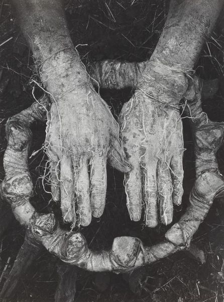 Dieter Appelt made this photograph, Erinnerungsspur--Statische Vibration, or Memory's Trace--Static Vibration, through a cameraless process, by placing objects on light-sensitive paper. The lack of color intensifies the image’s ghostly, unnerving quality. The texture is what gets me. See how the subject's head rests on what looks like bound sticks? The contrast between the smooth skin and rough wood creates a tension, a static vibration, like the title suggests. Those sticks look like they're both supporting and imprisoning, which is a heavy thing to think about. Appelt’s experimental approach reminds me a bit of Man Ray's Rayographs. Both artists embrace chance and process, pushing photography beyond representation. And like, what is the memory’s trace anyway? It’s not fixed, it’s always changing. Art doesn't need to give us answers, but it can ask those questions.