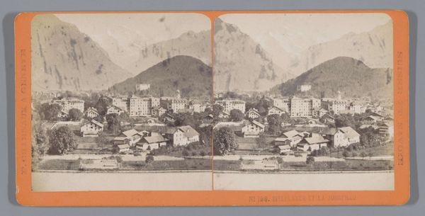 Curator: This photograph, titled "Gezicht op Milders in het Stubaital," thought to be captured sometime between 1860 and 1870 by the studio of Ferrier Pére-Fils et Soulier, offers us a fascinating glimpse into a past vista. It is such an appealing instance of the firm’s commercial views of various parts of Europe. Editor: It has this quiet stillness, doesn’t it? Almost like holding your breath. The layers of muted grays and whites… it's more mood than picture, somehow, a lullaby of the Alps. I find it interesting to experience how photography once aspired to have painterly affectations. Curator: Indeed! Think of how photography was often used to not just record, but also construct, social and cultural perceptions. The Stubaital was and remains an important tourist area, so photographs such as these also operated as a sort of pre-Instagram, an opportunity for consumers to share "exotic" scenery for local consumption. Also, consider that its creation coincides with an emerging European sense of itself: documentation helped consolidate narratives and, certainly, solidify stereotypes. Editor: Absolutely. I think that the framing—the way the valley is compressed and the town seems almost like a child's toys nestled into place—speaks to that very carefully curated vision. This photographer wants us to feel safe, to have a sense of peace…but it's very controlled. How does its very commercial aspect and distribution inform this? Curator: It touches on something quite compelling: it gives consumers who have been there, a place to remember. In an attempt to evoke emotional resonances with its photographic rendering, a kind of "photographic fiction," one could argue! However, this artistic strategy may be perceived in the realm of representation with certain reservations given their capacity to shape understandings and legitimize particular historical and societal attitudes, perpetuating existing narratives. Editor: Well, its capacity to continue prompting questions remains striking. A tiny Tyrolian poem in shades of gray. Curator: Exactly, and like a poem, we get to create new verses of interpretations through its public availability!
