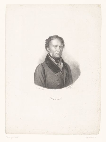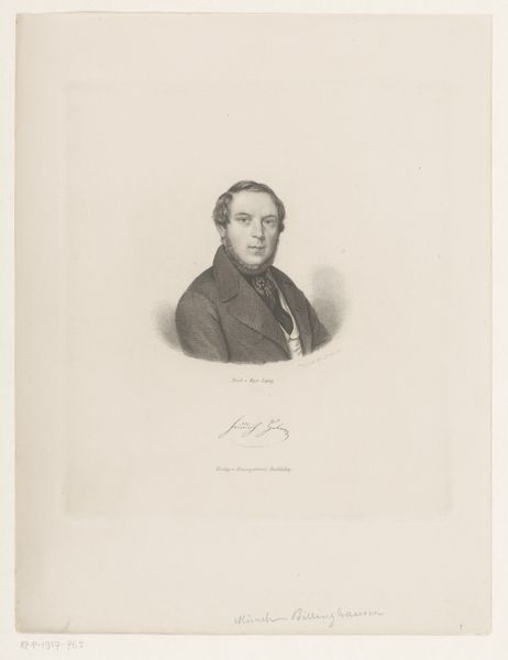 Curator: Then, there’s this lithograph from 1844 titled "Kongl. skuespiller M.R. Wiehe." It's an austere rendering of an actor from that period. What strikes you about it? Editor: I notice its formal style and how that reminds me of old photos. He has this stern, almost romantic profile, you know? How would you interpret this work in light of its historical context? Curator: I’m interested in how the piece, and portraiture generally, reflects the power structures of the time. Who got to be depicted, and how? A lithograph made stardom accessible to wider audiences by reproducing celebrity, yet it inevitably catered to a bourgeois viewership. The very act of immortalizing someone's image raises questions about the distribution of visibility and representation. Doesn’t it make you consider who is excluded? Editor: I suppose it does. I never really thought of a portrait as political before. Curator: Consider the subject's gaze, his clothing, even the print medium itself – they all communicate a message, a constructed identity intended to impress. How does this particular presentation reinforce or challenge societal expectations of men and performance during that period? Editor: It's interesting to think about what that portrait communicated about status. Thanks to lithography, this could reach a larger audience...so it's about accessibility and maybe democratization, too? Curator: Precisely. This print reveals how art served, and continues to serve, as a stage for performing identity and power. Considering it was made available to the public opens the way for a different kind of discourse, making it an early case study for how accessible portraits allow us to discuss representation in new ways. Editor: Wow, I hadn’t considered all the social and political angles in this portrait. Thanks for broadening my view. Curator: And thank you for posing the questions that lead to deeper reflections.