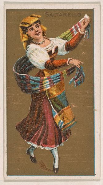 This is a trade card of 'Alme' from National Dances, printed by Kinney Bros. Tobacco Company in the late 19th century. It depicts an idealized vision of an Almeh, a class of female entertainers in Egypt, who were often dancers and singers. The card presents an exoticized view of Middle Eastern culture, reflecting the Orientalism prevalent at the time in the United States. American tobacco companies routinely used images of foreign cultures to market their products, creating a fantasy of otherness that was highly appealing to consumers. These cards were inserted into cigarette packs, incentivizing repeat purchases and creating a collectible series. Trade cards like this one offer us a window into the commercial culture of the late 19th century, as well as the social attitudes of the era. Understanding the social conditions and institutional practices that led to the production of this card requires delving into business history and the history of mass media. By examining sources like company records, advertising archives, and consumer surveys, the role of the historian is to illuminate these hidden histories and interpret the cultural meanings embedded in visual artifacts.