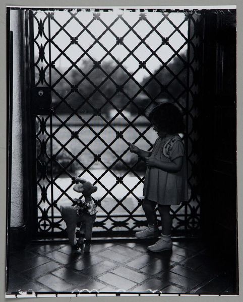 Curator: This photograph, simply titled "Chicago, Illinois," is by the artist Dave Heath, and is currently housed in the Harvard Art Museums. Editor: Wow, those shadows! It's got this gorgeous, almost sinister feeling to it. Like a film noir distilled into a single frame. Curator: Indeed. Heath's work frequently explored themes of alienation and urban life. The composition, with the brick wall looming over the children, suggests a sense of confinement. Editor: It’s interesting how the children are almost silhouettes. It’s hard to make out details, but the older one is raising his arm, like warding something off, or maybe leading the way. It invites you to create a story. Curator: Heath was known for his ability to capture fleeting moments and imbue them with deeper meaning. This image seems to speak to the vulnerabilities of childhood within a specific urban setting. Editor: Absolutely. It captures a moment that's both beautiful and unsettling, a little haunting, even. It lingers in your mind long after you look away.