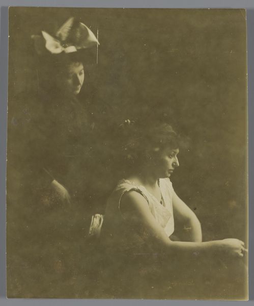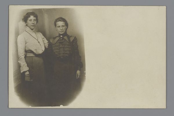 This photograph, Dubbelportret van Katy Engel en Hermien Marmelstein, was made by American Automatic Fotografie and captures two figures in a sepia-toned world. Look at the texture; it's not just in what's depicted, but also in the way the image itself feels aged and worn. There’s a kind of honesty here, a directness, no fancy retouching. You can almost feel the grit of the developing process, the slight imperfections that give it character. It reminds me of early experimental films, where the materiality of the medium is part of the story. Now, notice the soft blurring around the edges, like the world fades into a dream beyond the frame. The surface is smooth, yet you sense the layers of emulsion, the chemicals interacting to fix this moment in time. It makes you think about what’s visible and what remains hidden in any portrait. Think about how the quiet intimacy between the subjects is presented with a kind of formal, almost clinical detachment. It’s not unlike some of the work of Diane Arbus in its focus on the realness of the subject, but here without the same level of theatricality.