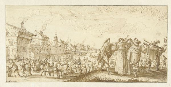 This print of a Mediterranean harbor scene was made by Isaac Vincentsz. van der Vinne using etching, sometime between 1680 and 1740. Etching is an indirect intaglio process, where the artist covers a metal plate with a waxy, acid-resistant ground. They then draw through the ground with a sharp needle, exposing the metal. When the plate is immersed in acid, the exposed lines are etched into the surface. The depth of the lines determines how much ink they hold, and thus the darkness of the printed line. In this scene, the controlled, precise lines create a sense of depth and detail, from the figures in the foreground to the distant ships. The artist’s labor is evident in the intricate network of lines, and the etching technique, which allowed for the reproduction of images, reflects a growing market for art and a shift towards more mechanized forms of production. The print then becomes an object of consumption, inviting reflection on labor, trade, and the social hierarchies of the time.