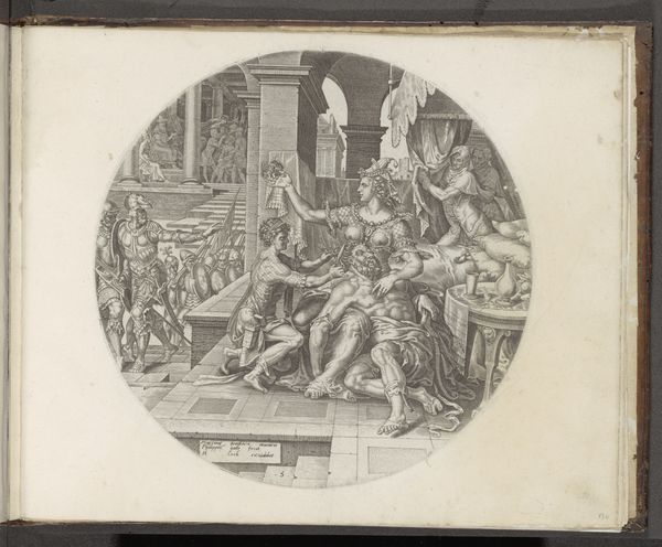 Philips Galle made this print, *Job ontvangt geschenken*, sometime before his death in 1612. We can see that it visualizes a passage from the Book of Job. But how does it shape our understanding of that story? Galle was a leading printmaker in Antwerp, in the Spanish Netherlands, and his workshop produced images for a wide international market. This print translates a well-known biblical story into a visual language that would have resonated with viewers in the 16th and 17th centuries. Look at the figures offering gifts. They're not just generic biblical characters; they're rendered with details of dress and physiognomy that would have signaled specific social types to Galle's contemporaries. To truly understand this image, we need to delve into the visual culture of the period. We need to look at how similar stories were depicted, how social hierarchies were represented, and how the institutions of art – like printmaking workshops – shaped the production and dissemination of images.