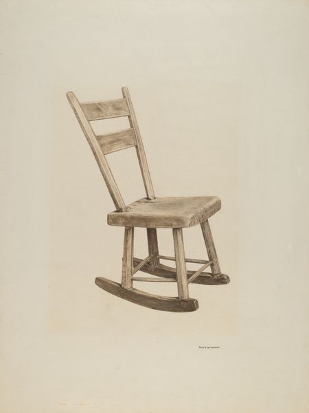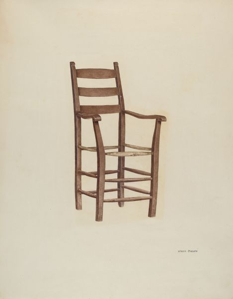 William Kieckhofel's watercolor painting of a chair captures a moment of quiet observation. The subdued palette, dominated by earthy browns and grays, creates a sense of warmth and familiarity. It’s not so much about showing off, as just appreciating a form. Up close, you can see the artist's hand in the subtle variations of tone and texture. The wood grain is rendered with delicate strokes, while the leather seat is treated with a more matte finish. The artist has paid close attention to the way light falls across the surface, creating highlights and shadows that emphasize the three-dimensionality of the object. Look at the scalloped edge of the lower support, it's not just a detail, it's a moment of playfulness. This piece reminds me of Fairfield Porter, in that it elevates the everyday to something worthy of contemplation. It’s a gentle reminder that art can be found in the most unexpected places, if only we take the time to look.