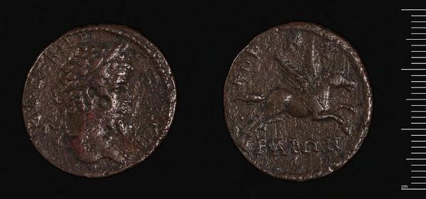 Editor: This is an Anonymous Follis, a coin, and its date is unknown. What strikes me most is how the raised figures and lettering create a tactile experience. What aspects of its formal qualities stand out to you? Curator: Indeed. The circular form, bisected by the images stamped on each side, presents an interesting study in duality. Notice the figure on one side, its halo a perfect complement to the coin's edge. The incised text on the opposite side further emphasizes the interplay between positive and negative space. Editor: That's fascinating. I hadn't considered the spatial relationships so deeply. Curator: The worn texture, too, adds another layer. Does this erosion detract, or does it enhance the coin's visual narrative? Editor: I see your point. It's as if the wear itself is part of the composition. I will consider this further. Thank you.