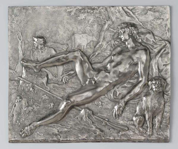 Curator: The tension in this carving is palpable. Annibale Fontana’s “The Abduction of Dejanira,” made sometime in the 16th century, depicts a violent moment frozen in relief. Editor: It certainly captures a dramatic instant. There's something frantic about it. Look at Dejanira’s cloak billowing wildly, and the centaur seems caught mid-gallop. It conveys raw energy. Curator: Absolutely. Fontana was working in a cultural moment obsessed with classical narratives and mythological dramas. This relief, like many others from the Italian Renaissance, served a didactic purpose, reminding viewers of moral lessons through visual storytelling. Editor: Abduction, of course, is a potent symbol in art. The act speaks of power, dominance, and disrupted social order. This scene from the Hercules myth—with the centaur Nessus attempting to carry off Dejanira, only to be shot by Hercules—highlights a battle between civility and barbarism, doesn't it? Curator: Precisely. Renaissance audiences would have instantly recognized this scene. It underscores the era’s fascination with bringing classical mythology into the present, as the tales resonated with contemporary social and political concerns about justice and the established order. Editor: You can feel the psychological undercurrent, too. Dejanira's posture expresses her fear as much as the centaur projects a terrifying strength. And what about the arrow aimed to change her trajectory? I notice there is something unsettling about the very solidness of that object defying gravity. Curator: Interesting observation, that Renaissance art used mythology to speak to present concerns like marital honor, concepts of heroism, and social disruptions of family lines. The carving acts almost as a propaganda piece. Editor: So true, it's a great illustration of how images become cultural touchstones, continuously reworked to hold fresh meaning. These historical accounts have lasting potency. Curator: Exploring these narratives across media really shows how power structures use these iconic scenarios for their legitimization and, perhaps also, reinvention. Thanks for the conversation, very enlightening. Editor: It's fascinating to realize that even what we consider ‘high art’ still reflects elemental truths about ourselves and our place within power structures. Thanks to you, too.